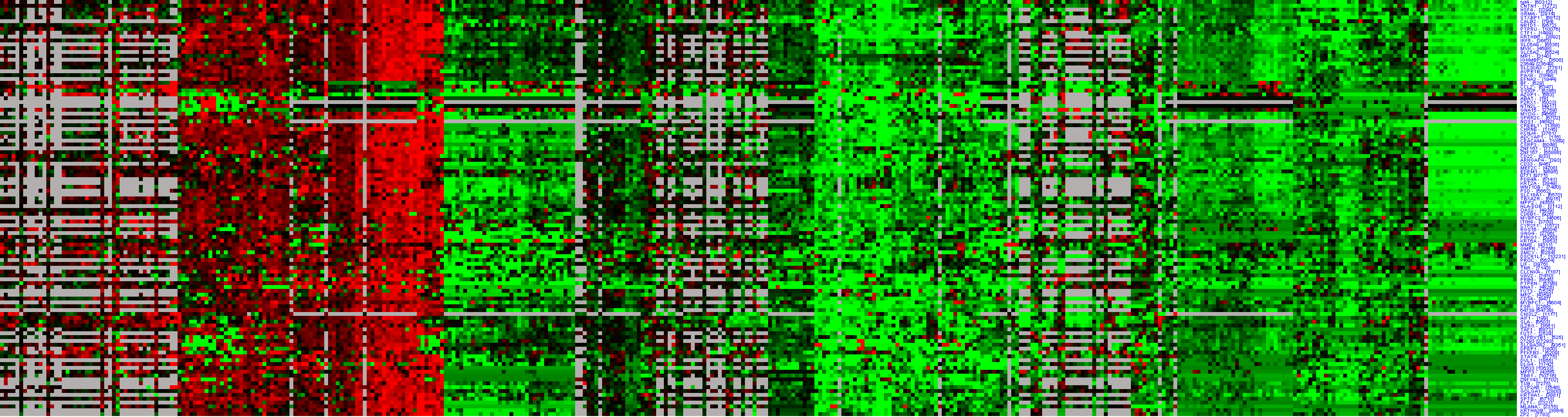 | For each of the clinical annotations, we tested whether it was enriched in the set of arrays in which the module is significantly induced (or repressed). Below we list all such annotations that were enriched in this module with an FDR corrected p-value of 0.05 ('P-value' column), along with the number ('Hits' column) of induced (or repressed) module's arrays in which they appear. We also show the fraction of the module's induced (or repressed) arrays with the given annotation ('Hits (%)' column). For completeness, we also list the total number of relevant induced arrays in the module ('Module hits in category' column), total number of arrays in the compendium in which the corresponding annotation is present ('Arrays in annotation' column), and the total number of relevant arrays in the compendium ('Arrays' column). Note that the 'relevant' arrays may be different for each annotation, since it includes only arrays in which the annotation was relevant (i.e., present or not present) and excludes arrays where the value of the annotation was not known. Rows that correspond to annotations that were enriched in the induced arrays of the module have a red background, while rows corresponding to annotations enriched in the repressed arrays have a green background. For each annotation, we also list the other modules in which it was enriched. |