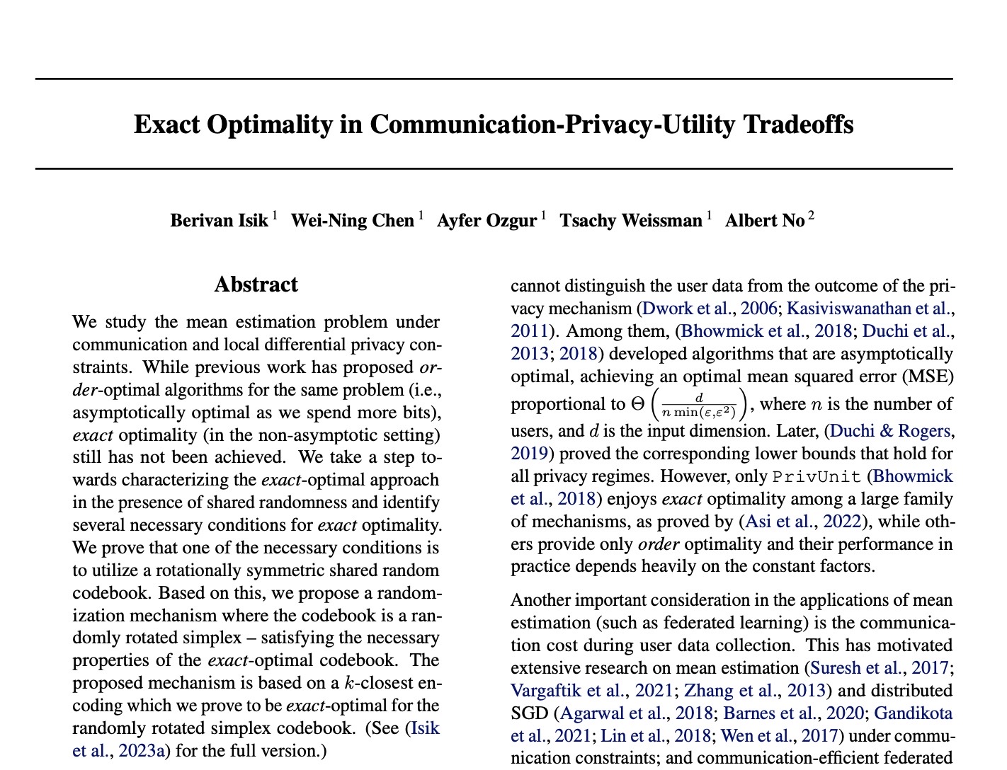 Authors: Berivan Isik, Wei-Ning Chen, Ayfer Ozgur, Tsachy Weissman, Albert No