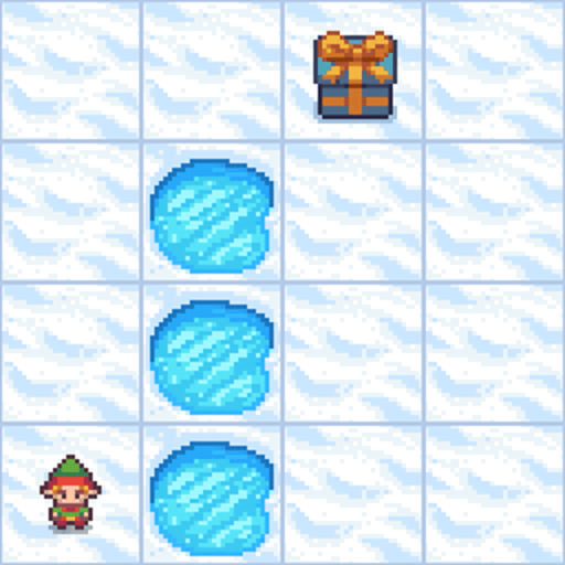 FrozenLake: Navigate a 4x4 frozen lake grid. The agent must reach the goal while avoiding holes. Requires understanding position and planning safe paths.