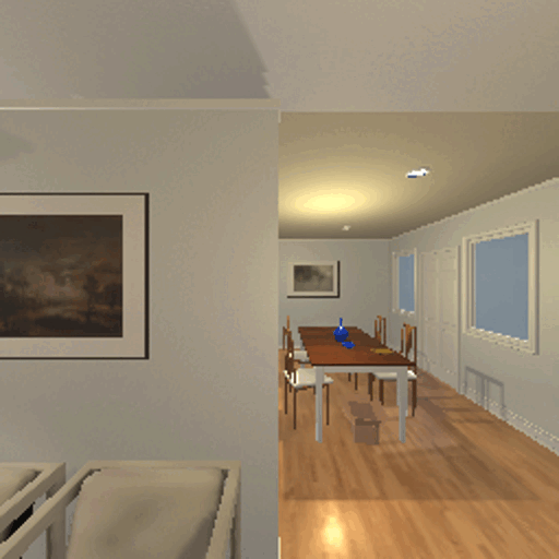 - In navigation: “I’m in a bedroom, facing the door, the target is a couch”