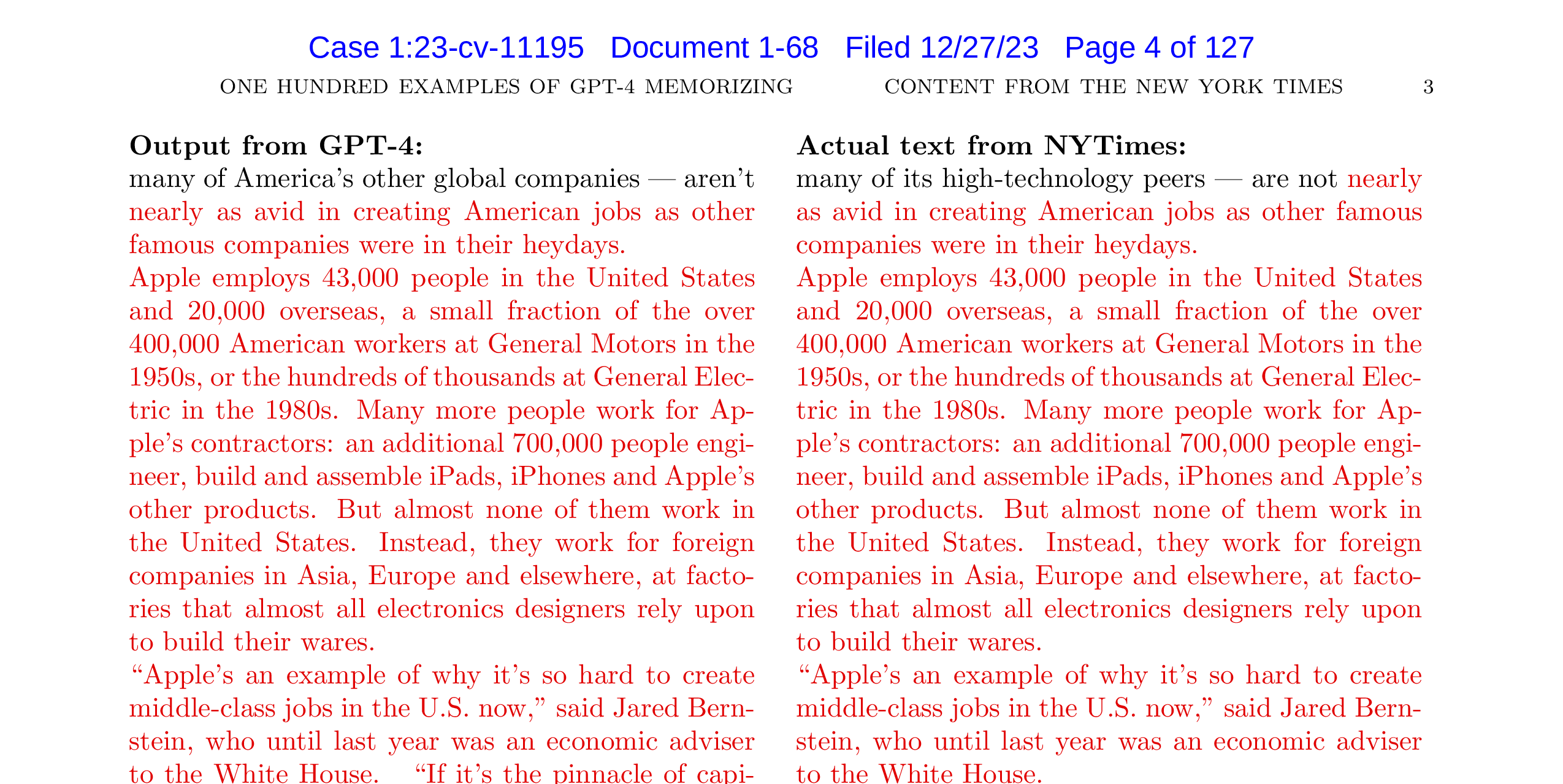 The New York Times Company v. Microsoft Corporation et al., No. 1:2023cv11195 - Document 1-68. Exhibit J: ONE HUNDRED EXAMPLES OF GPT-4 MEMORIZING CONTENT FROM THE NEW YORK TIMES. URL ↩
