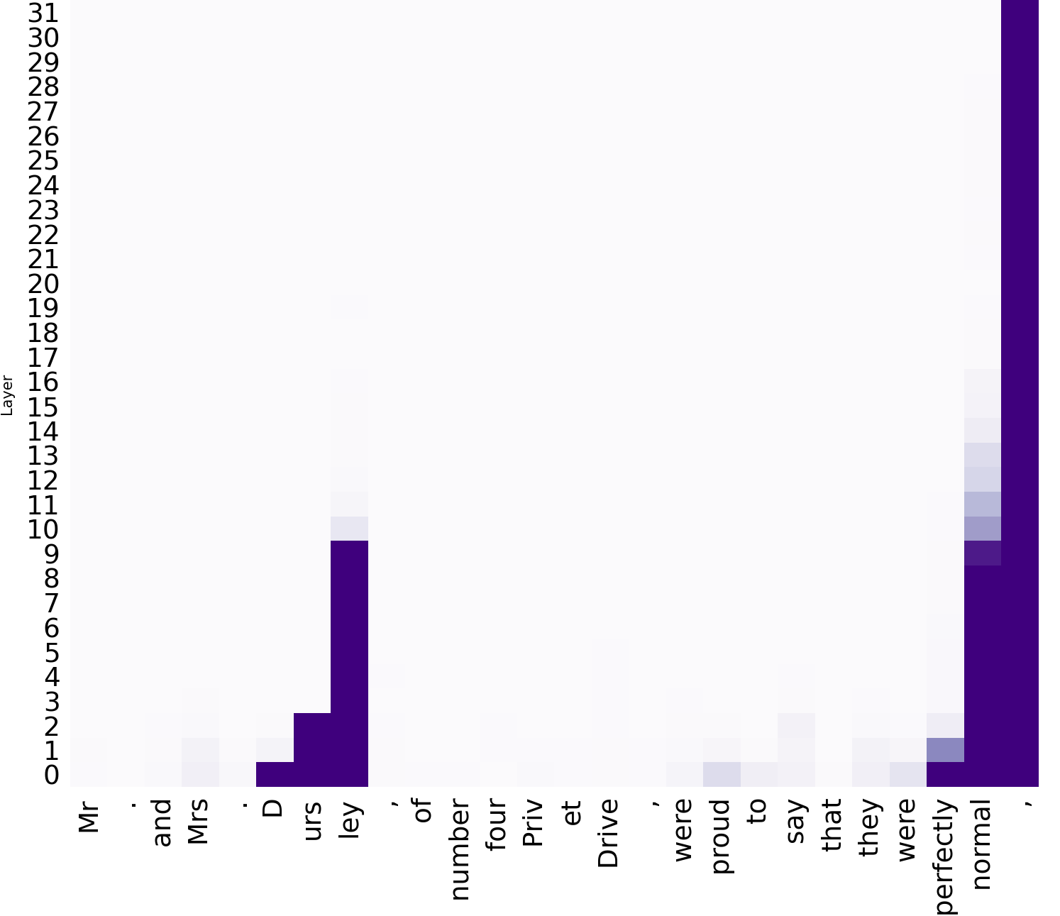 How does the model correctly generate the iconic continuation “thank you very much”? We intervene on every hidden state of the prompt and highlight the ones that have causal effects on generating the memorized tokens in Figure 4.