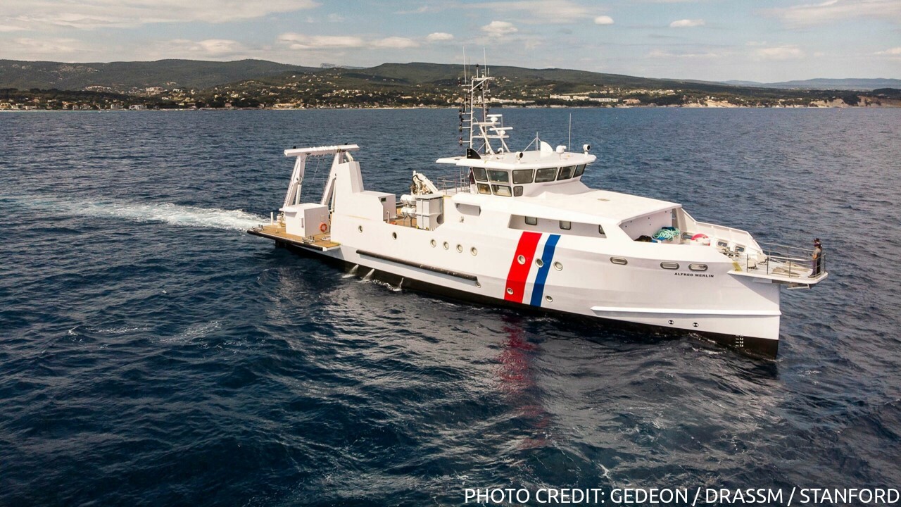 The Alfred Merlin is the science vessel that served as the team's base during missions. The new underwater archaeological research vessel of the Drassm was launched in 2021, enabling robots onboard to reach depths of up to 2500 meters.