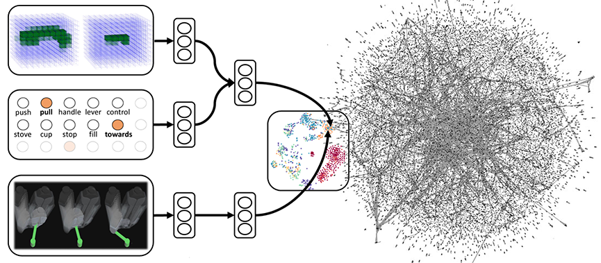 Deep Multimodal Embedding: Manipulating Novel Objects with Point-clouds, Language and Trajectories, Jaeyong Sung, Ian Lenz, and Ashutosh Saxena. International Conference on Robotics and Automation (ICRA), 2017. (ICRA Best cognitive robotics paper finalist) [PDF, arxiv, project page]