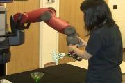Abstract: We consider the problem of learning good trajectories for manipulation tasks. This is challenging because the criterion defining a good trajectory varies with users, tasks and environments. In this paper, we propose a co-active online learning framework for teaching robots the preferences of its users for object manipulation tasks. The key novelty of our approach lies in the type of feedback expected from the user: the human user does not need to demonstrate optimal trajectories as training data, but merely needs to iteratively provide trajectories that slightly improve over the trajectory currently proposed by the system. We argue that this co-active preference feedback can be more easily elicited from the user than demonstrations of optimal trajectories, which are often challenging and non-intuitive to provide on high degrees of freedom manipulators. Nevertheless, theoretical regret bounds of our algorithm match the asymptotic rates of optimal trajectory algorithms. We demonstrate the generalizability of our algorithm on a variety of grocery checkout tasks, for whom, the preferences were not only influenced by the object being manipulated but also by the surrounding environment.
