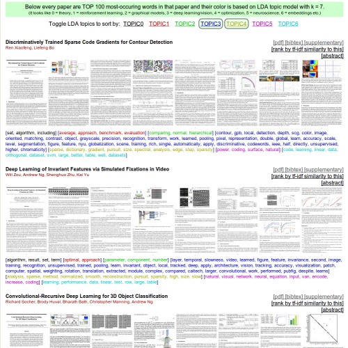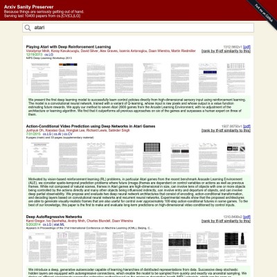 arxiv-sanity.com, which lets you search and sort through almost 100,000 Arxiv papers on Machine Learning over the last 6 years.