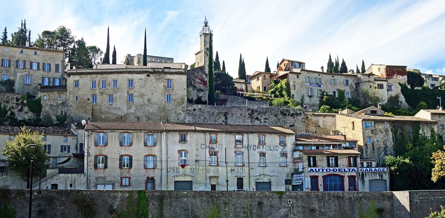 town″ of Vaison-la-Romaine) on a limestone hill above the Ouzeve River (2015). It shows the
