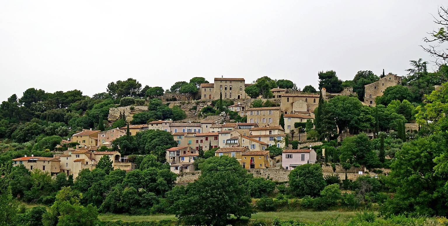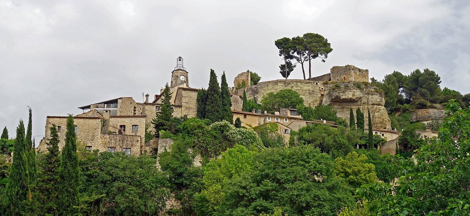 Medieval village built on a hill slope north of the Dentelles of