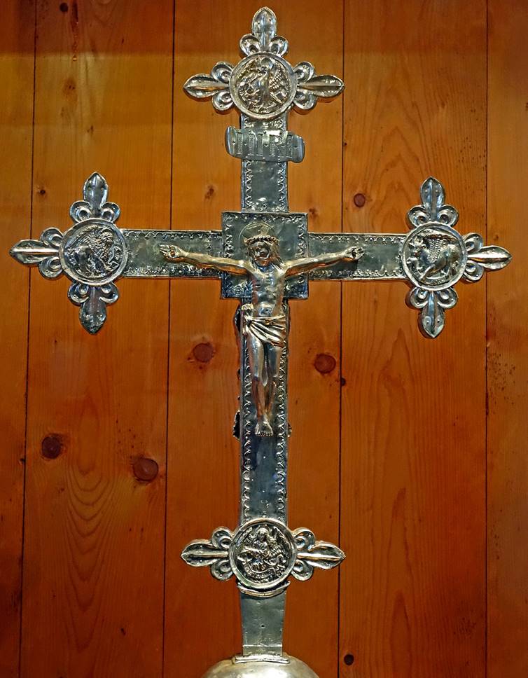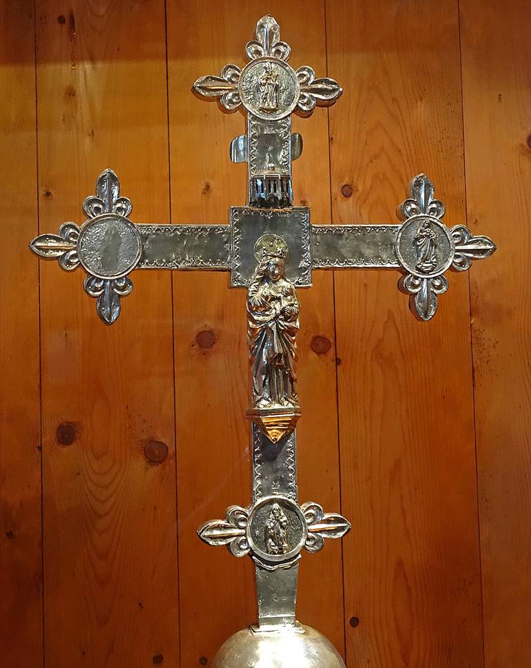 exposed in the church. The two-sided cross is made of carved silver plated on