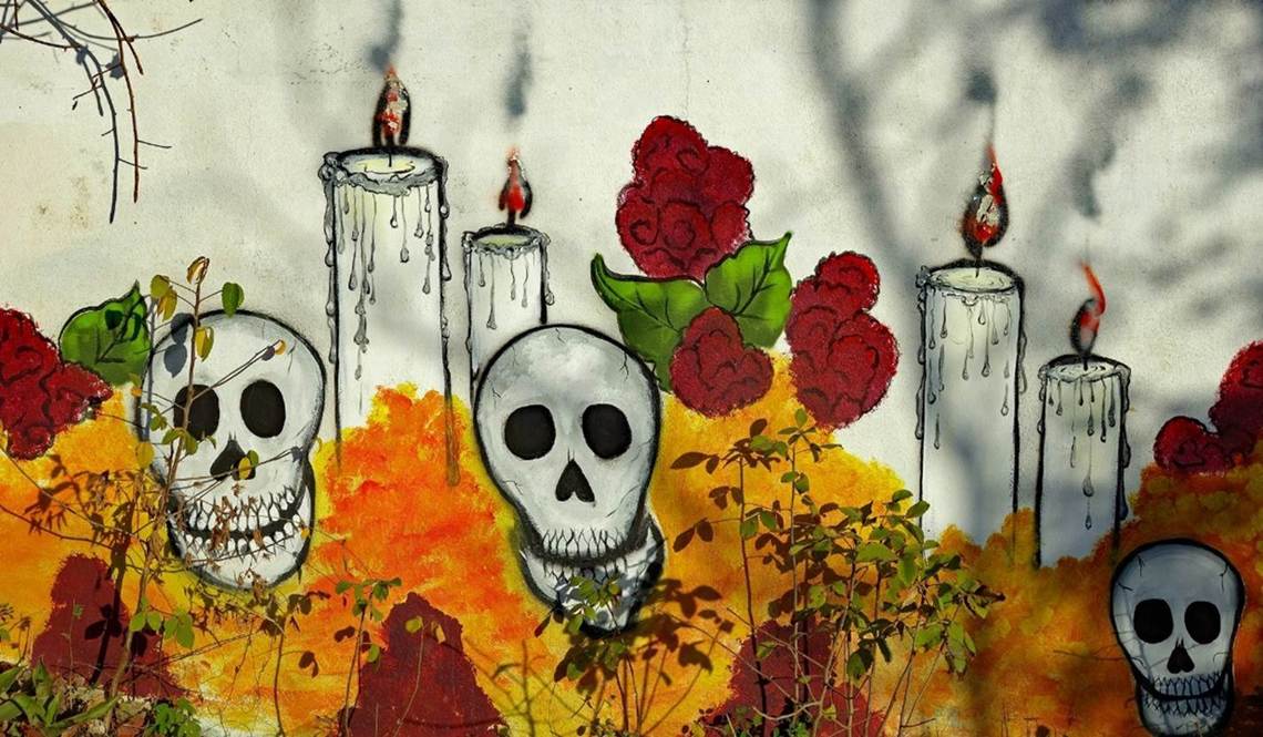 Murals at the entrance of the cemetery