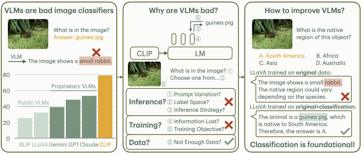 Why are Visually-Grounded Language Models Bad at Image Classification?
